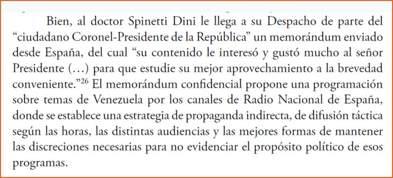 Efectivamente, ese acuerdo se cerró. En España comenzó a salir en los medios oficiales una visión de Venezuela basada en lo que entonces se llamaba Nuevo Ideal Nacional. Por supuesto, ello ocultaba el régimen de censura y persecución imperante, a la vez que desprestigiaba las acciones de la diáspora, entonces concentrada en Francia, Bélgica y Suiza.